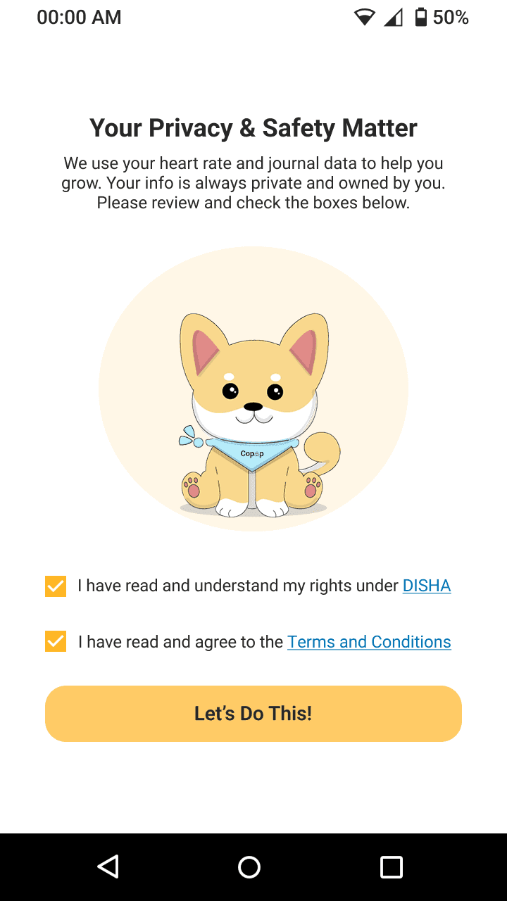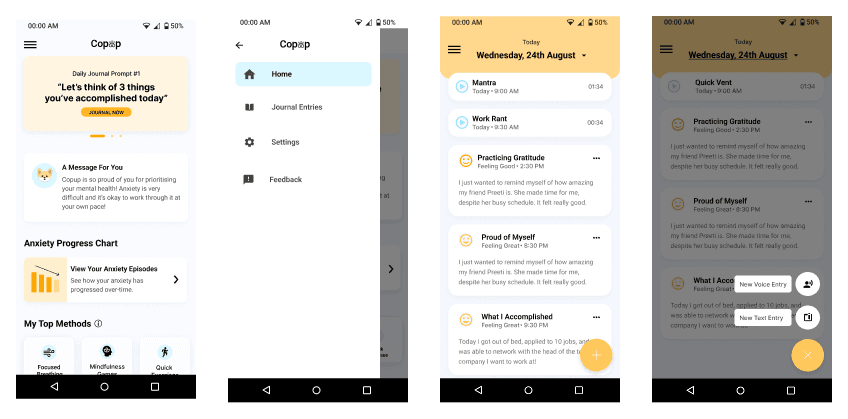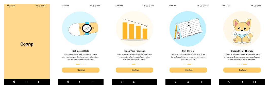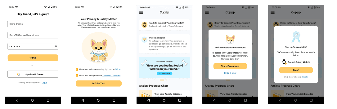 There are many young adults in India who deal with anxiety in their busy day-to-day activities and need a solution that would support them through this issue. Copup is a mobile application that connects with wearable technology to give anxiety relief from anywhere. This built through extensive surveying, interviewing, cultural and medical research to create a digital platform that address their hardships.